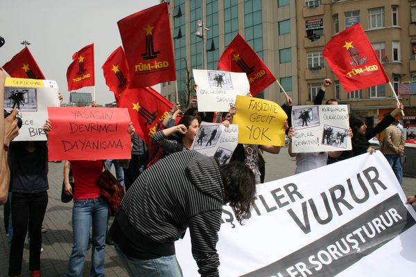 Son günlerde ilerici, demokrat öğrencilere karşı ülkücü-faşist saldırılar yoğunlaşırken, Akdeniz Üniversitesi'ndeki faşist saldırıya karşı, TÜM-İGD'li öğrenciler Taksim Meydanı Tramvay Durağı'nda bugün (12.04.2008) saat 13:30'da basın açıklaması yaptı.