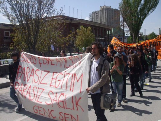 19 Nisan 08 Cumartesi günü Ankara'da, Sosyal Sigortalar ve Genel Sağlık Sigortası Yasası'nı protesto etmek amacıyla bir miting gerçekleştirildi. Eğitim-Sen'in genel çağrısıyla yapılan mitingte pek çok ilden Eğitim-Sen'lilerle beraber çeşitli parti, dernek ve demokratik kitle örgütleri de yerlerini aldılar.