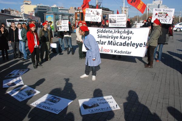 TÜM-İGD'li Kadınlar, 25 Kasım Kadına Yönelik Şiddete Karşı Uluslararası Mücadele ve Dayanışma Günü dolayısıyla Taksim'de tramvay durağında basın açıklaması yaptı...