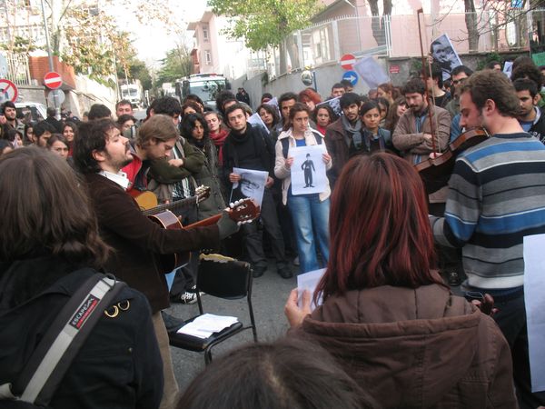 İstanbul Üniversitesi öğrencileri kapanan ÖKM önünde panellerini yaptılar / 19.12.2008