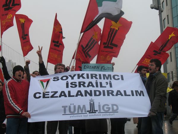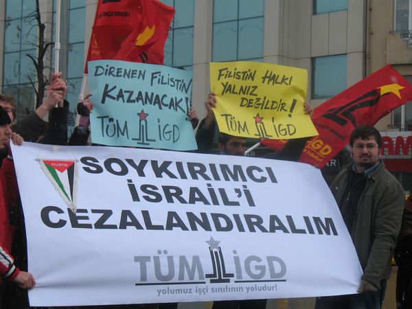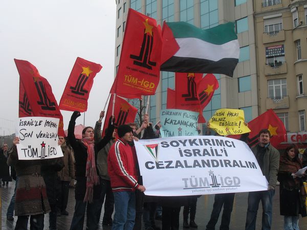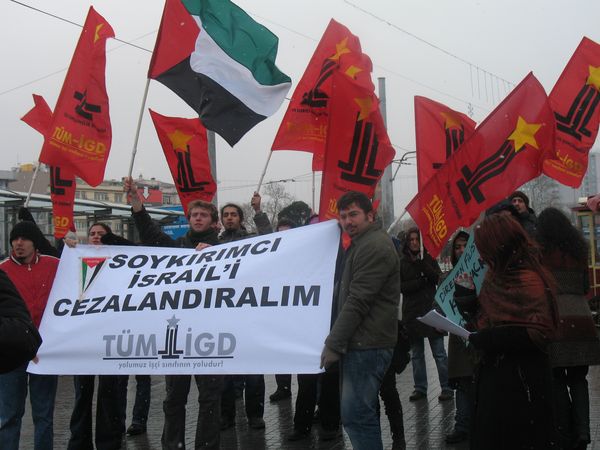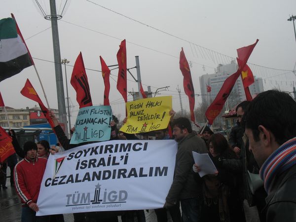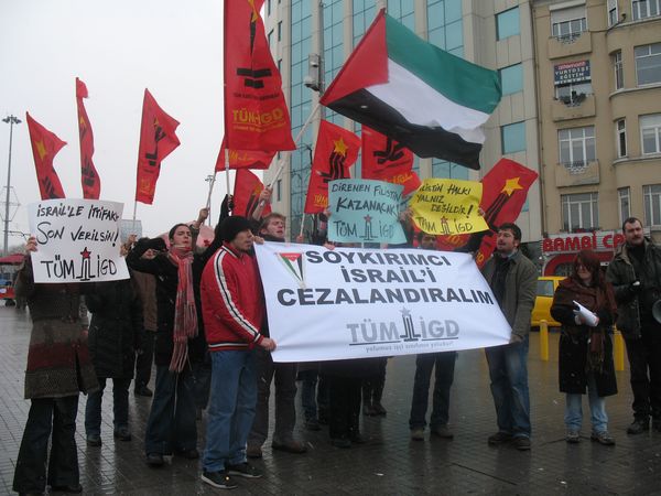 TÜM-İGD taksim tramvay durağında İsrail'i lanetleyen bir basın açıklaması yaptı.