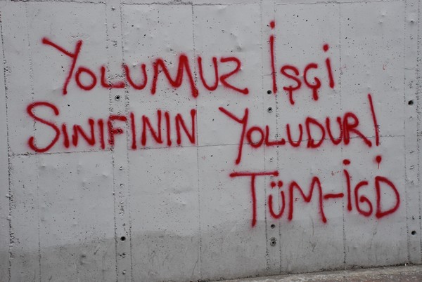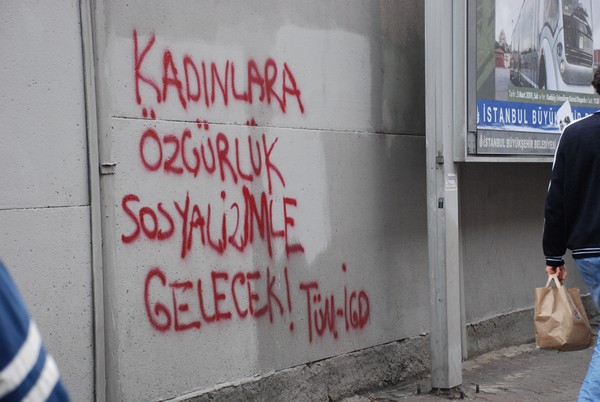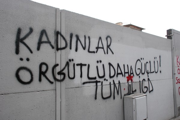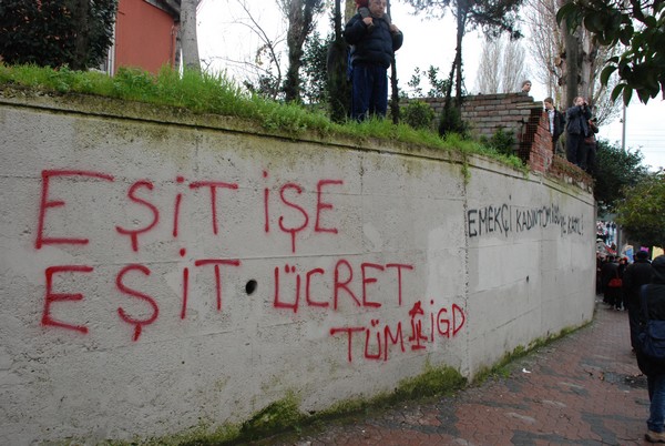 İstanbul Kadıköy'de 8 Mart mitingine katılan TÜM-İGD'li Kadınlar yazılama çalışması yaptılar.