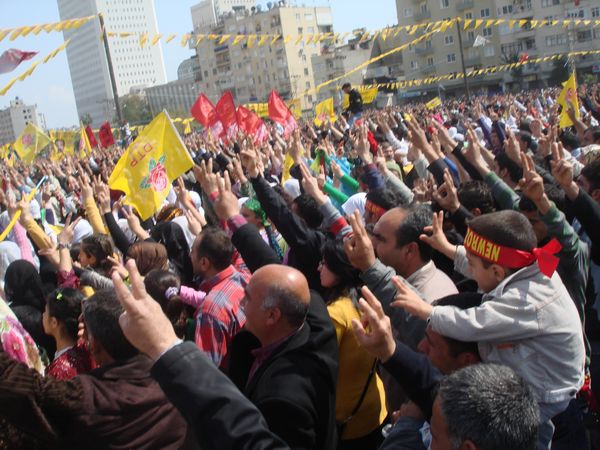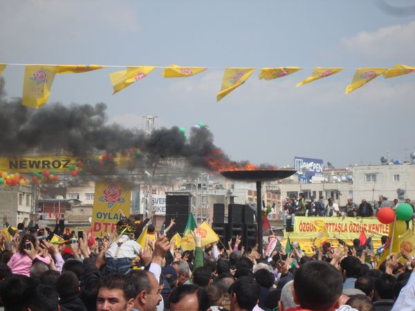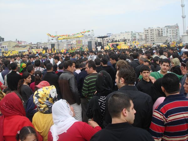 Mersin'de 10 binler Demirci Kawa' nın yaktığı ateşin hiç sönmemesi için Newroz'u kutladılar
