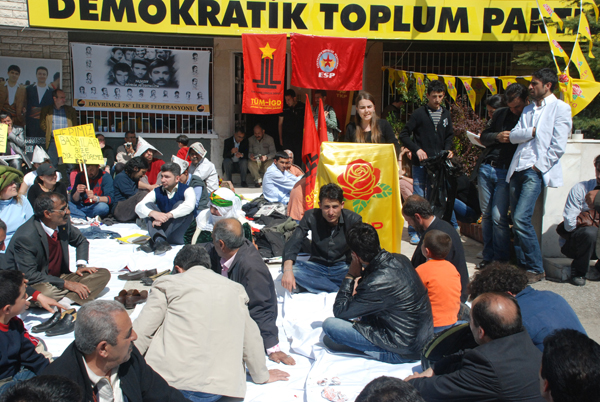 dtp'ye yapılan operasyonlar ankara'da tüm-igd'nin de katıldığı bir oturma eylemi ile protesto edildi.