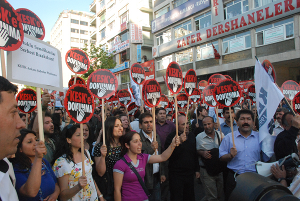 kesk yapılan gözaltı ve baskınlara karşı ankara'da eylem yaptı.