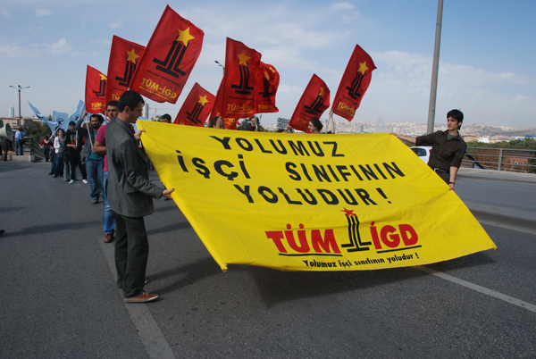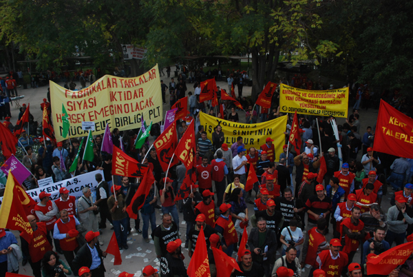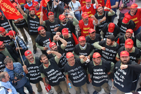 kent aş işçileri izmirden ankaraya yaptıkları yürüyüşü kitlesel bir açıklamayla sona erdirdi.