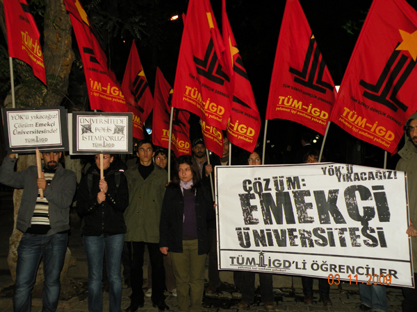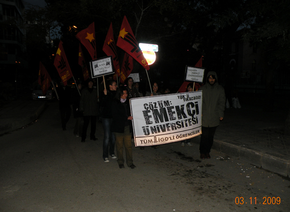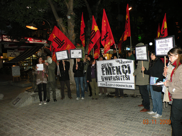 ankarada ilerici gençler yök'e karşı emekçi üniversitesi şiarını yükseltmek için eylem yaptı