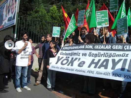 YÖK karşıtı eylemler sürüyor. Öğrenciler soruşturma ve cezalara karşı Yıldız Teknik Üniversitesi önündeydi / 22.10.2010