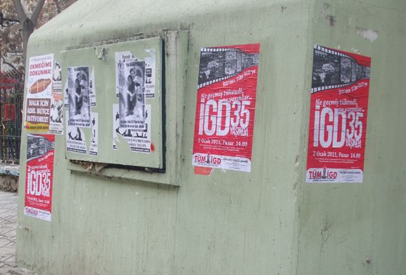 İlerici gençler, İGD'nin 35. yıl etkinliğinin yaklaştığı şu günlerde sokak afişlemeleriyle çalışmalarına devam ediyor.