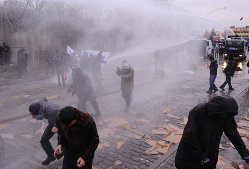 Ankara'da polis öğrencilere biber gazları ve tazyikli suyla saldırdı.