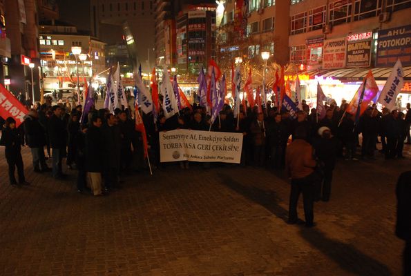 TÜRK-İŞ'e bağlı sendikalar Petrol-İş, TÜMTİS, Tezkop-İş torba yasaya karşı Kızılay'ın Sakarya caddesinde saat 18.30'da ortak basın açıklaması yaptı.