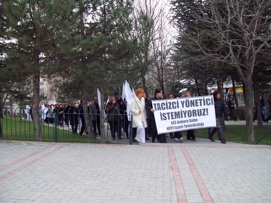 ES Ankara Şube Hacettepe Üniversitesi İşyeri Temsilciliği işyerlerindeki kadınlara yönelik mobbing (yıldırma/her türlü taciz)uygulamasının ve her türlü baskının durdurulması için basın açıklaması gerçekleştirdi.
