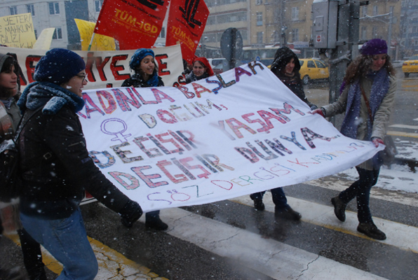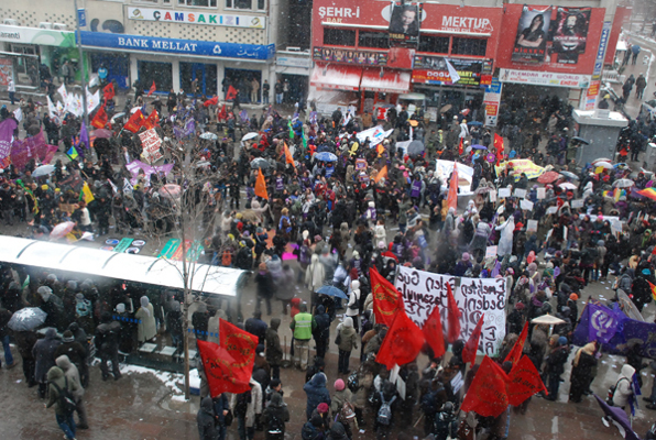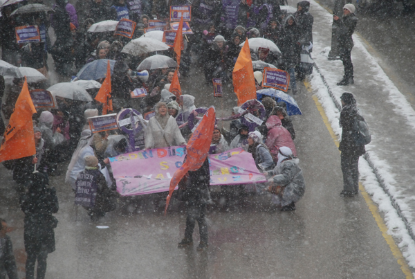 Ankara'da kar yağışına rağmen coşkulu 8 Mart mitingi / 08.03.2011