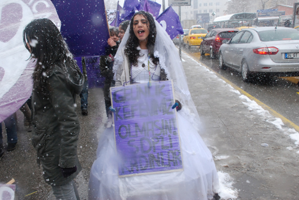 Ankara'da kar yağışına rağmen coşkulu 8 Mart mitingi