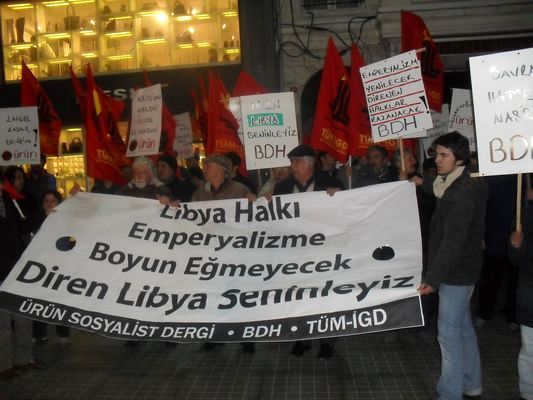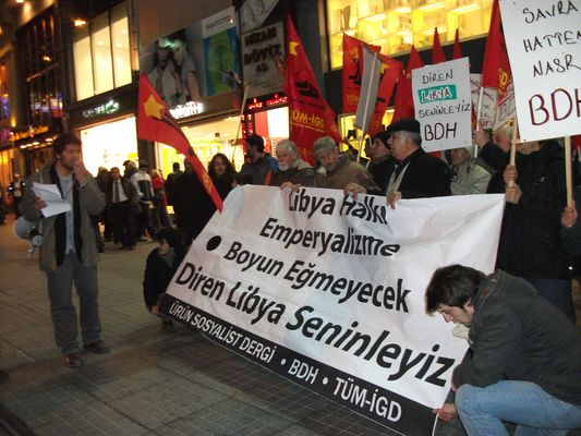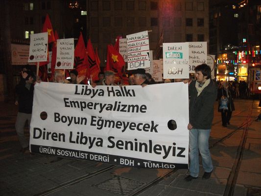 Emperyalistlerin Libya'ya gerçekleştirdiği saldırıyı protesto etmek amacıyla 22.03.2011 saat 19.00'da Ürün Sosyalist Dergi tarafından Galatasaray Tramvay Durağı'ndan Fransız Konsolosluğu'na doğru bir yürüyüş ve Fransız Konsolosluğu önünde de bir basın açıklaması gerçekleştirildi.