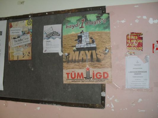 1 Mayıs afişleri İstanbul Üniversitesi'nde ilerici gençler tarafından duvarlara asıldı.