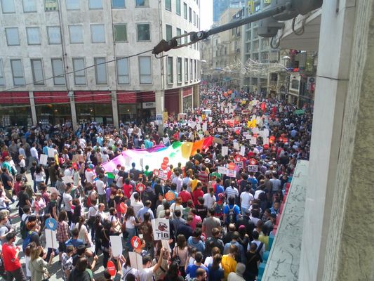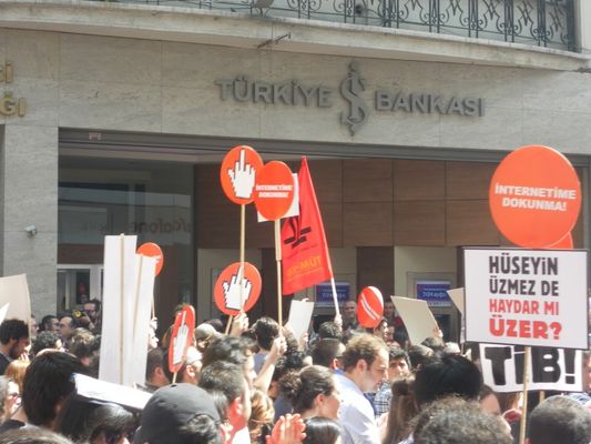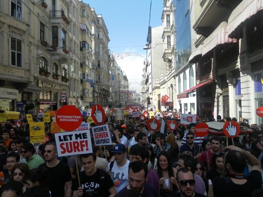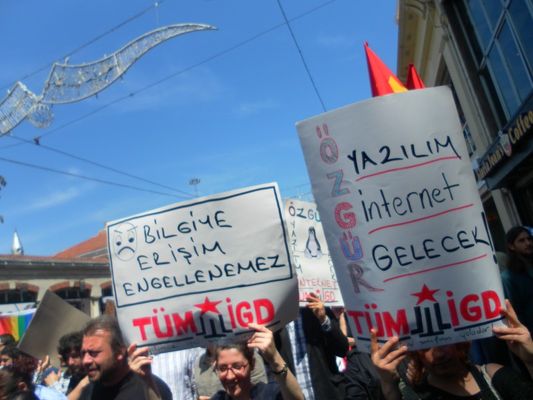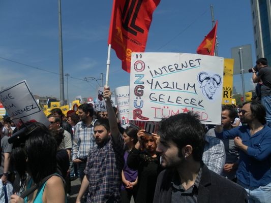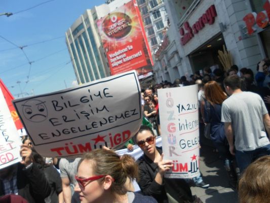 Linux Kullanıcıları Derneği'nde birleşen özgür yazılımcılardan, internet sözlükleri kullanıcılarına, İnternetime Dokunma İnisiyatifi'nden futbol taraftarlarına, ev işçilerinden öğrencilere, işçilerden emeklilere binlerce insanın katıldığı eylemde TÜM-İGD'li gençler de yerini aldı. Saat 14.00'da Taksim Tramvay Durağı'nda toplanan kitle "İnternetime dokunma" ana pankartının arkasında Taksim Meydanı'ndan Tünel'e yürüdü.