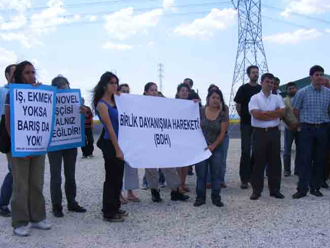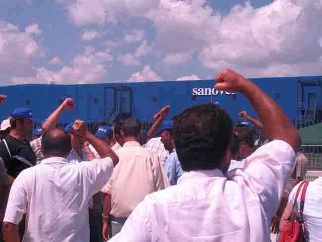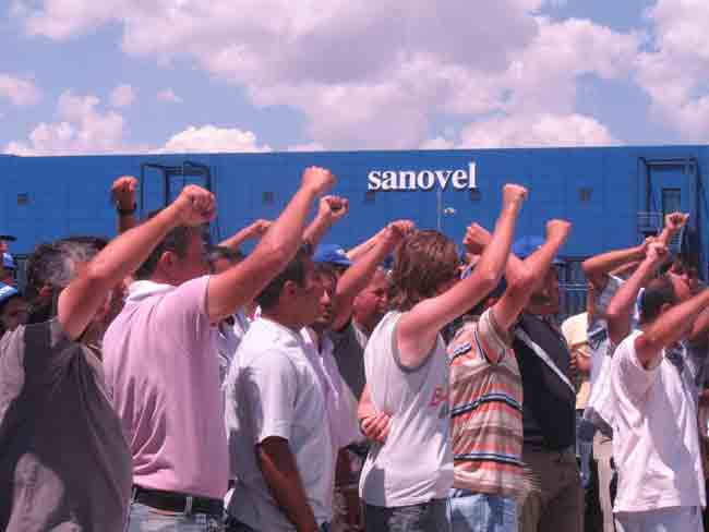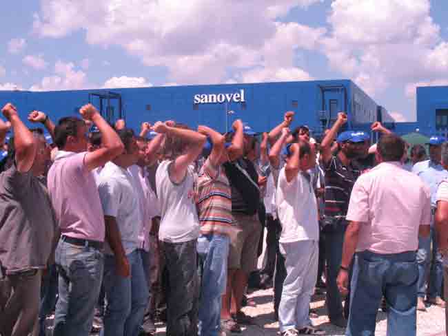 Silivri, Çanta'da bulunan Sanovel Fabrikası'nda çalışan işçiler Petrol-İş'e üye olmuşlardı. Ağır çalışma koşulları, asgari ücret ve sigorta dışında hiçbir haklarının olmaması yüzünden sendikaya üye olarak örgütlü bir mücadele yolunu seçen işçilere karşı patronun tutumu düşmanca oldu. Fabrika sahibi daha hiçbir konuyu görüşmeden işçileri çıkarmaya başladı. Yapılan bu haksızlığa karşı 190 Sanovel işçisi de 4 Haziran 2007 tarihinde direniş kararı almışlardı. Direnişlerinin 39. gününde, Birlik Dayanışma Hareketi ile birlikte TÜM-İGD olarak Sanovel işçilerine destek olmak amacıyla Çanta'daki Sanovel Fabrikası önündeydik.