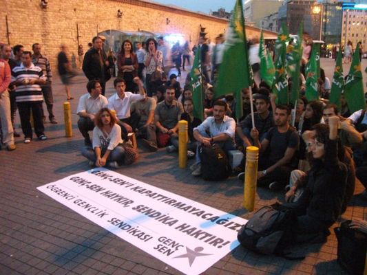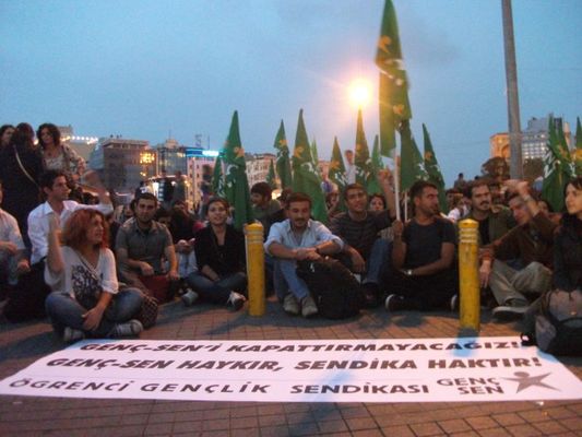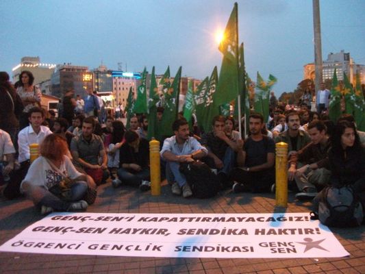 Öğrenci gençlik sendikası Genç-Sen'in kapatılmasını protesto etmek için Genç-Sen üyeleri bugün( 29.09.2011) saat 19.00'da Taksim Tramvay Durağı'nda oturma eylemi yaparak basın açıklaması gerçekleştirdi.