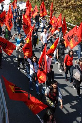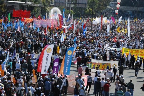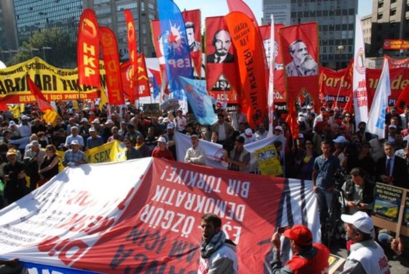 DİSK, KESK, TMMOB ve TTB'nin düzenlediği, "İnsanca yaşam için eşit, özgür, demokratik Türkiye" talebiyle bir araya gelen onbinler, AKP hükümetinin uyguladığı politikaları protesto etti.