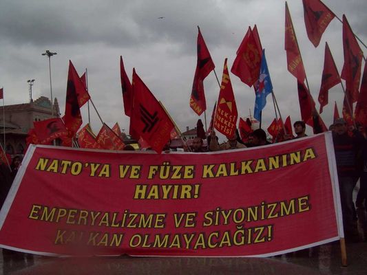 Kadıköy Altıyol'dan, vapur iskelesine; Ürün Sosyalist Dergi'nin de bileşenlerinden olduğu Nato ve Füze Kalkanı Karşıtı Birlik tarafından "Emperyalizme ve Siyonizme Kalkan Olmayacağız" yürüyüşü gerçekleştirildi.