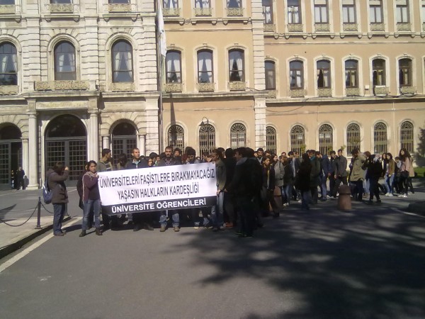 İstanbul üniversitesi'nde önceki gün yaşanan faşit saldırının ardından ilerici, devrimci öğrenciler saldırıyı protesto etmek için bir basın açıklaması gerçekleştirdi. Yapılan açıklamanın ardından ülkücü faşistler ve polis ilerici ve devrimci öğrencilere saldırdı. 2 öğrenci faşistlerin saldırısı sonucu yaralanırken, 6 öğrenci gözaltına alındı.
