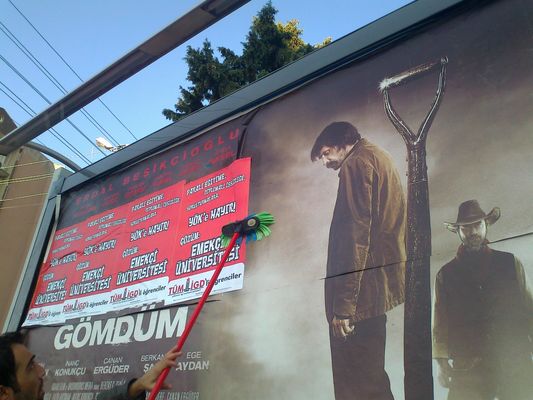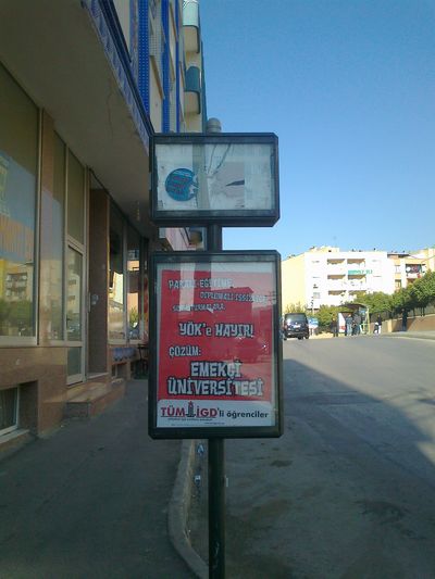 Tınaztepe'de, Yıldız Mahallesi'nde ve Üçkuyular'da "YÖK'e Hayır! Çözüm: Emekçi Üniversitesi" şiarlı afişler yapıldı.