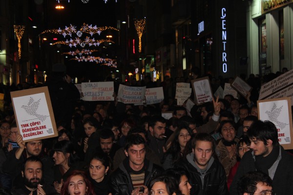 Bugün (6 Aralık) Taksim Tramvay Durağı'nda toplanan yüzlerce kişi tutuklu bulunan öğrenciler için özgürlük talebini dile getirdi.