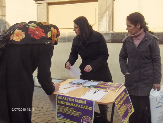 Bugün (27.12.2011) İzmir'de Kemeraltı'nda TÜM-İGD'li Kadınlar'ın da birleşeni olduğu Kadın Cinayetlerini Durduracağız Platformu (KCDP) masa açtı..