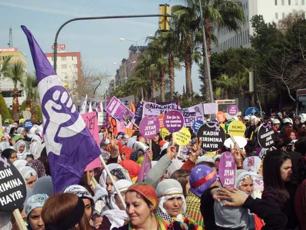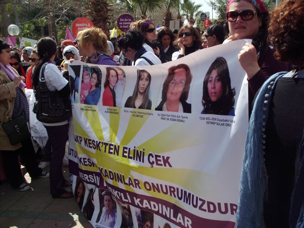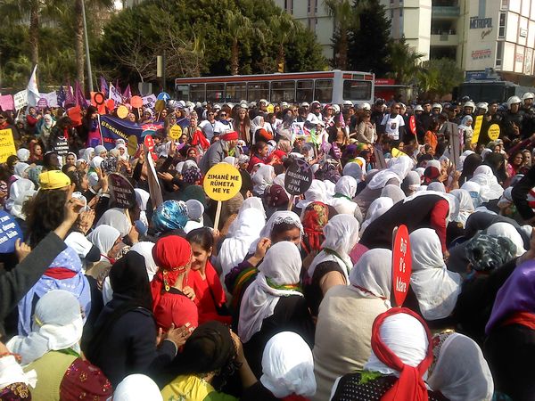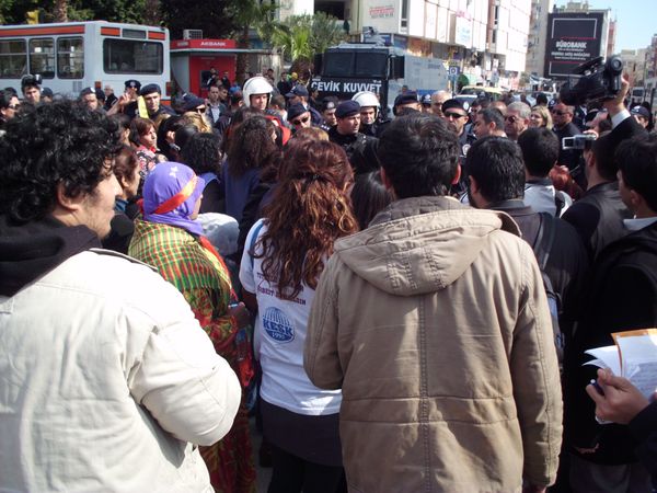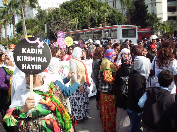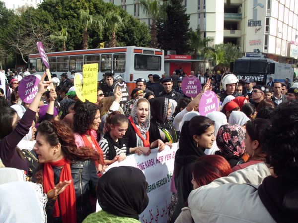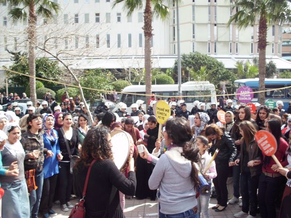 Bugün (08.03.2012) İlerici Kadınların da üyesi olduğu Mersin Kadın Platformu tarafından 8 Mart Dünya Emekçi Kadınlar Günü kutlandı. Mersin Metropol Binası önünde toplanmaya başlayan kadınlara, polis Akdeniz Belediyesi önüne kadar müdahale etti, müdahalelerin sonucunda 4 kadın gözaltına alındı.