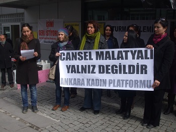 İnşaat Mühendisleri Odası'nın (İMO) işten çıkarttığı Cansel Malatyalı'ya İlerici Kadınlar'ın da içinde bulunduğu Ankara Kadın Platformu'ndan destek geldi. Ankara Kadın Platformu bugün (17.03.2012) İMO'nun "performans yetersizliği" nedeniyle işten çıkattığı Cansel Malatyalı'ya dayanışma ziyareti gerçekleştirdi.