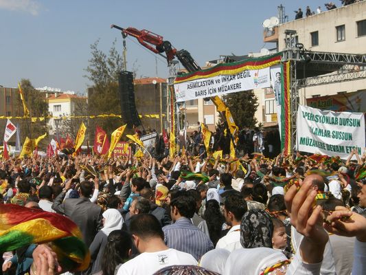 Birçok ilde çatışmayla engellenmeye çalışılan Newroz Bayramı İzmir'de geçtiğimiz gün (21.03.2012) İzmir Hipodrom Meydanı'nda coşkuyla kutlandı. Ayrıca hafta içi birçok ilçenin yanı sıra Ege Üniversitesi'nde de kutlama gerçekleştirildi. TÜM-İGD'nin de katıldığı kutlamalarda başta Diyarbakır ve İstanbul olmak üzere birçok ilde AKP'nin Newroz kutlamalarına saldırıları protesto edildi.
