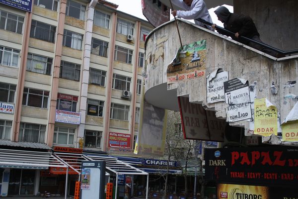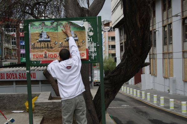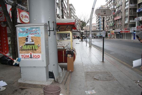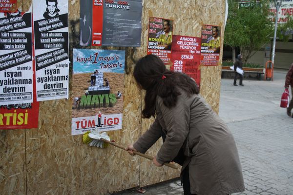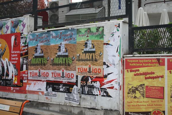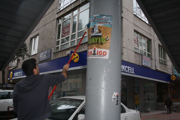 İlerici Gençler bugün (19.04.2012) Ankara-Kızılay'da birçok cadde ve sokağı "Haydi 1 Mayıs'a Taksim'e" sloganlı afişlerle donattı.