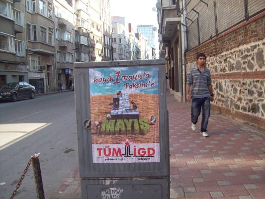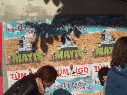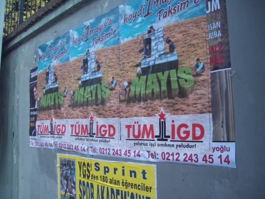 İlerici Gençler bugün (20.04.2012) Mecidiyeköy-Şişli hattını "Haydi 1 Mayıs'a Taksim'e" sloganlı afişlerle donattı.