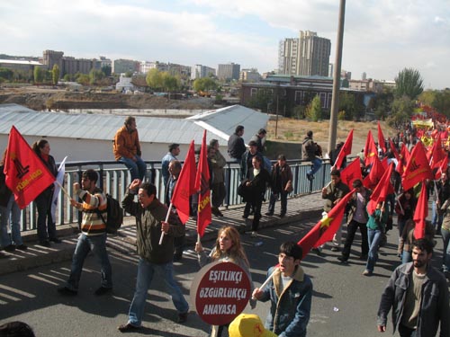 Türkiye'nin dört bir yanından gelen on binlerce insan Kürt sorununa adil, demokratik ve barışçıl bir çözüm için; 12 Eylül Anayasası ile AKP anayasasının dışında emekçilerin lehine üçüncü bir yol olduğunu göstermek için; özgürlük ve demokrasi için yürüdü. KESK, TTB ve TMMOB'un çağrısıyla düzenlenen miting son günlerde estirilen ırkçı/faşist rüzgarlara tüm Türkiye çapından verilen bir yanıt olması açısından da önemli bir yer tutuyor.