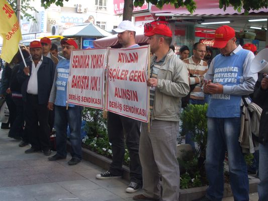 Ankara'nın ünlü ayakkabı firması TOGO'da sendikalı oldukları için işten atılan TOGO işçileri dün (17.05.2012) bir açıklama gerçekleştirdi.