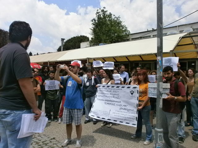 Dört gündür Ege Üniversitesi Edebiyat Fakültesi önünde toplanan kartpostallar dün (07.06.2012) üniversitede okuyan ve tutuklu bulunan öğrencilere yollandı.
