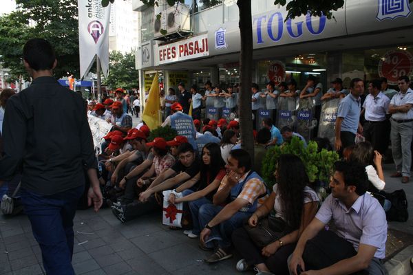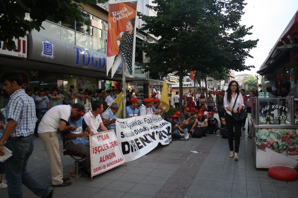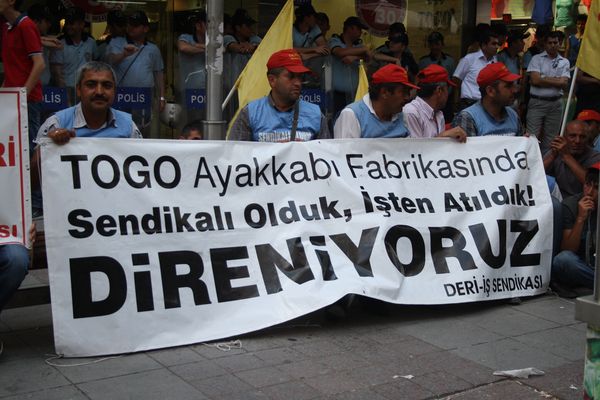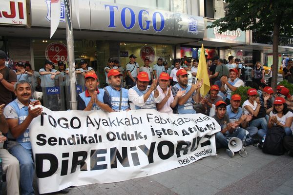 Sendikalı oldukları için işten atılan TOGO işçileri bugün (28.06.2012) Ankara'da İzmir Caddesi'nde bulunan TOGO Mağazası önünde işten atmalara karşı bir eylem gerçekleştirdi. Çevreden geçen halkın da desteklediği eylemde TÜM-İGD'li gençler de direnişçi TOGO işçilerinin yanında yer aldı.