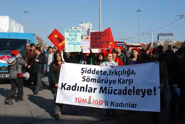 TÜM-İGD'li Kadınlar 25 Kasım Kadına Yönelik Şiddete Karşı Uluslararası Mücadele Ve Dayanışma Günü dolayısıyla Taksim Meydanı'ndan Galatasaray Lisesi önüne bir yürüyüş gerçekleştirdi.