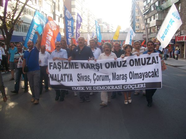 Malatya'da Kürt ve Alevi olan aileye yönelik yapılan saldırıları protesto etmek için bugün (30.07.2012) Ankara Yüksel Caddesi'nde basın açıklaması gerçekleştirildi. Aralarında TÜM-İGD'li gençlerin de olduğu çok sayıda ilerici, devrimci, yurtsever kurum da eylemde yerini aldı.