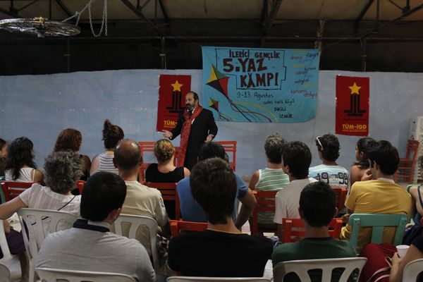 Tüm yılın çalışmalarını değerlendirdiğimiz, öğrenirken eğlendiğimiz 5'inci İlerici Gençlik Yaz Kampı ikinci gününde de tüm coşkusuyla devam etti. Türkiye ve Dünya gündeminin tartışıldığı panel, fotoğraf, drama, ritim ve halk oyunları atölylerin düzenlendiği ikinci günde ilerici gençlere Laz Marks Emice oyunuyla tanınan tiyatrocu Haldun Açıksözlü'de eşlik etti.