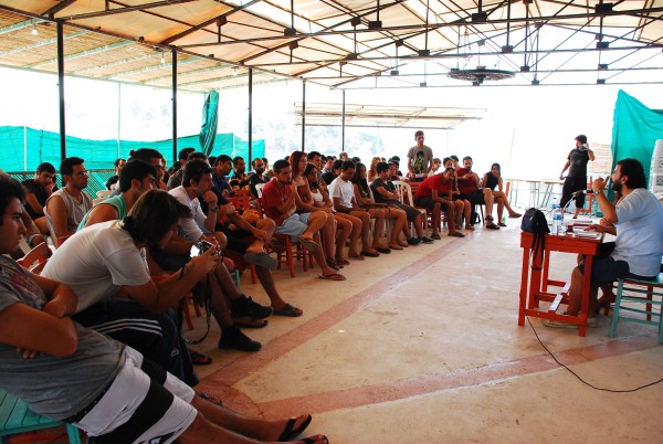 İlerici gençlerin düzenlediği 5. İlerici Gençlik Yaz Kampı üçüncü gününde(11.08.2012) çeşitli etkinliklerle devam ediyor. Giderek yoğunlaşan etkinlik programında bugün, doğa tahribatının hızla arttığı ve yakıcı bir problem olan HES'ler, "Su ve direniş" ve "Anadolu'da HES mücadeleleri" adlı panelle başladı. Ardından atölyelerle, eğlenerek öğrenen ilerici gençler, 78'in engin denizi Harun Karadeniz yoldaşın ve TKP emektarı aynı zamanda TKP 1920 kurucularından, engin çınarımız Bekir Karayel yoldaşın portrelerini yaptı. Bergama Belediye Başkanı Osman Özgüven de kampı ziyaret ederek İlerici Gençler