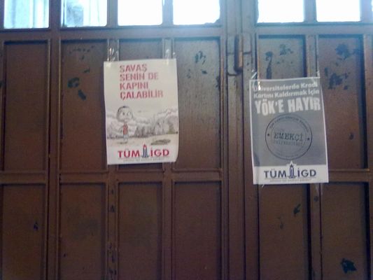 İstanbul Üniversitesi'nden İlerici Öğrenciler bugün (17.04.2012) İstanbul Üniversitesi Merkez Kampüs ve Fen-Edebiyat Fakültesi'nde "YÖK'e hayır" afişlemeleri yaptı.