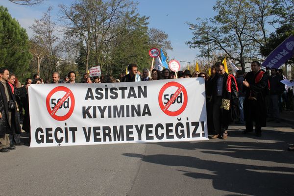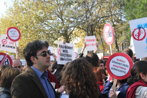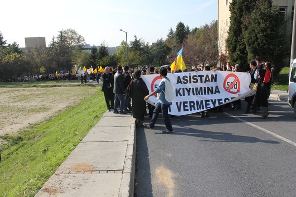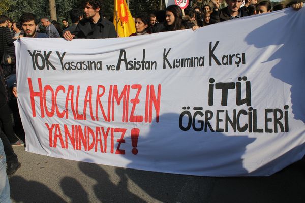 Bugün (15.11.2012) saat 12:30 da İTÜ'lü araştırma görevlileri, öğretim üyeleri ve öğrenciler asistan kıyımına son demek için İTÜ Maslak Kampüsü yemekhanesi önünde toplanıp rektörlüğe doğru yürüyüş gerçekleştirdi. Katılımın yüksek olduğu yürüyüşe aralarında TÜM-İGD'li öğrencilerin de bulunduğu çok sayıda öğrencinin yanı sıra HAVA-İŞ Sendikası, KESK, Eğitim-Sen ve TMMOB destek verdi.