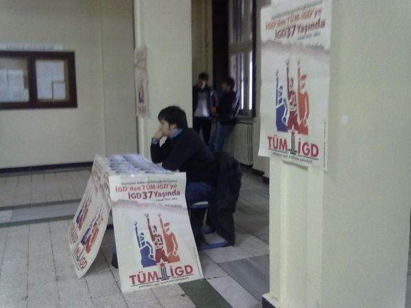 İlerici Öğrenciler bugün (17.02.2012) İstanbul Üniversitesi Beyazıt Merkez Kampüsü'nde İGD'nin kuruluşunun 37. yılına yönelik afişleme ve stand çalışması gerçekleştirdi. Öğrenci gençlere mücadeleyi birlikte örme çağrısı yapan broşürlerin de dağıtıldığı masaya İÜ'lü öğrencilerin ilgisi yoğundu.