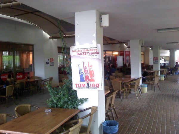 Mersin Üniversitesi'nden İlerici Öğrenciler bugün (19.12.2012) Mersin Üniversitesi Çiftlikköy Kampüsü'nü İGD'den TÜM-İGD'ye İGD 37 yaşında afişleriyle donattı. Afişlemenin ardından stand açan İlerici Öğrenciler, İGD'den TÜM-İGD'ye kadar olan süreci kısaca özetleyen broşürler dağıtarak İlerici Gençlik mücadelesini ve taleplerini anlattı. Standı ziyaret eden öğrencilerle ülke ve dünya gündemine ilişkin sohbetler de gerçekleştirilirken, M.Ü. öğrencilerine mücadeleyi birlikte örme çağrısı yapıldı.