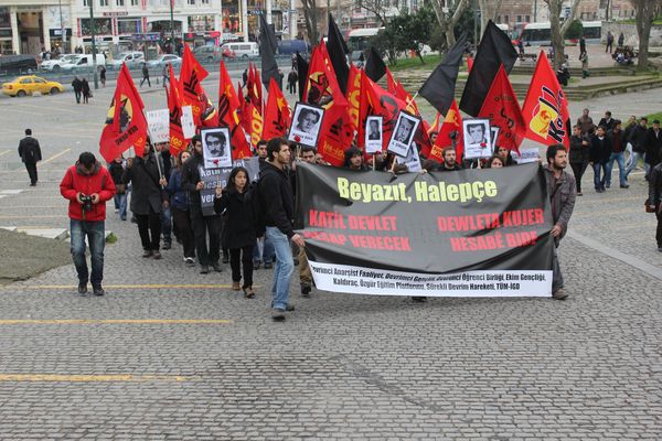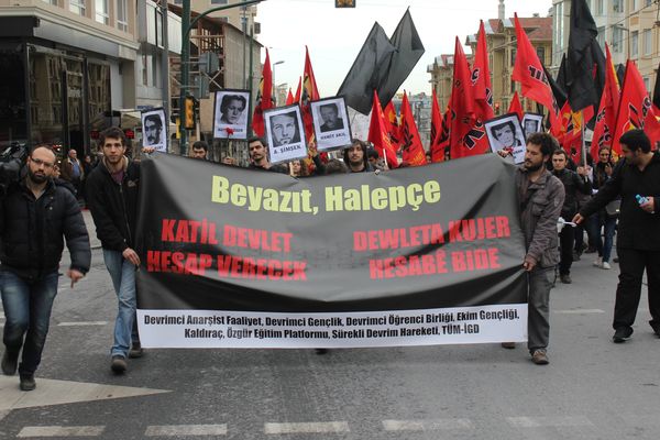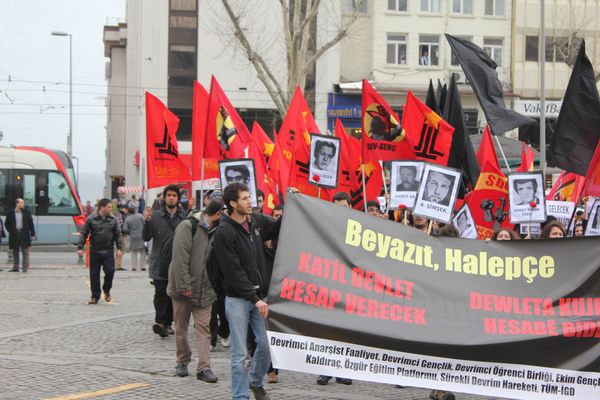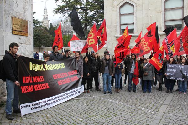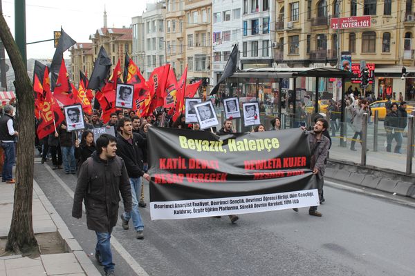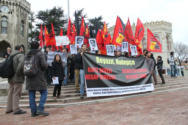 16 Mart 1978 Beyazıt Katliamı ve 16 Mart 1988 Halepçe Katliamı, İstanbul'un çeşitli üniversitelerinden öğrencilerin katılımıyla bugün (15.03.2013) Beyazıt Meydanı'nda gerçekleştirilen bir eylemle lanetlendi. TÜM-İGD, DAF, Devrimci Gençlik, DÖB, Ekim Gençliği, Kaldıraç, ÖEP, TÜM-İGD ve SDH'ın örgütleyiciliğinde gerçekleştirilen eyleme TKP 1920 temsilcileri de destek verdi.