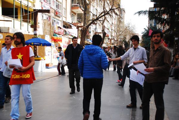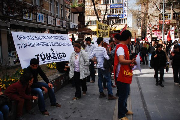 İşçi sınıfının birlik, dayanışma ve zafer günü olan 1 Mayıs yaklaşırken Ankaralı İlerici Gençler 1 Mayıs çalışmalarına başladı. Bugün (06.04.2013) Ankara Yüksel Caddesi'nde "Gençlik baskılara direniyor, TÜM-İGD safında 1 Mayıs'a yürüyor!" başlıklı bildiriler dağıtan ilerici gençler Ankara halkı ve gençliğini 1 Mayıs'a çağırdı.