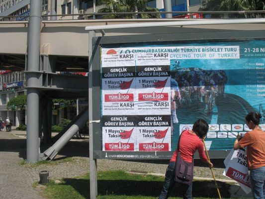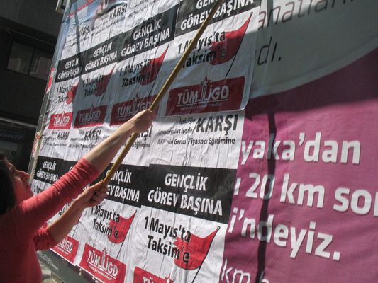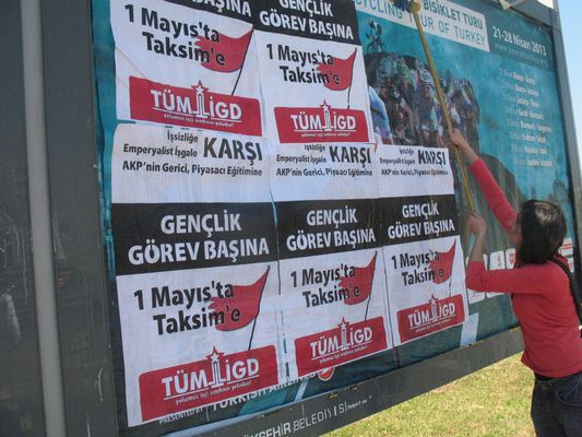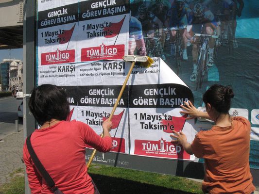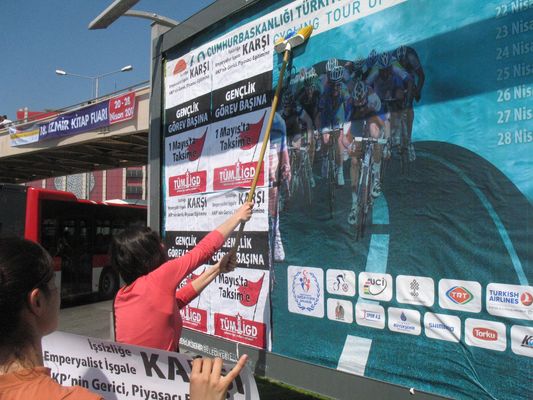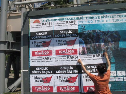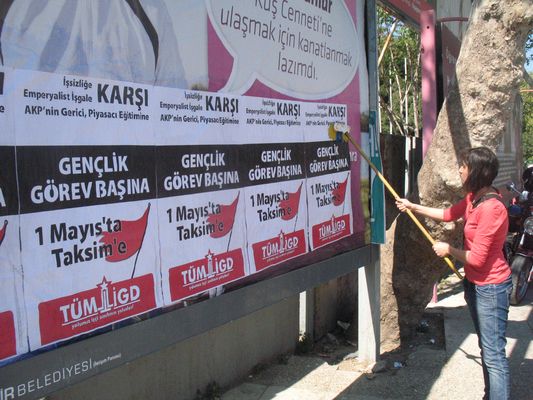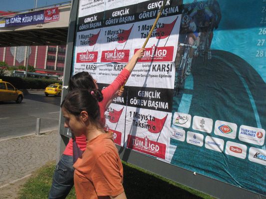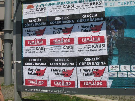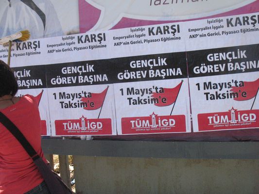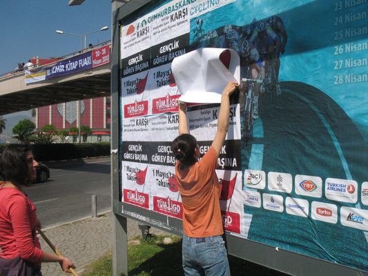 İzmir'de birçok bölgede yoğun bir şekilde afişleme çalışması yapan İlerici Gençler bugün de (27.04.2013) çalışmalarını sürdürdüler.